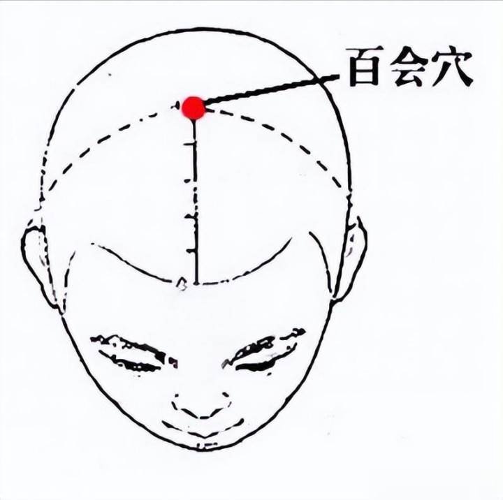 百会穴是调节大脑功能的核心穴位,堪称“头部健康总开关”。它位于头顶正中央,找起来很方便:先找到头部前后正中线,再找到两耳尖的连线,两条线的交叉点就是百会穴。